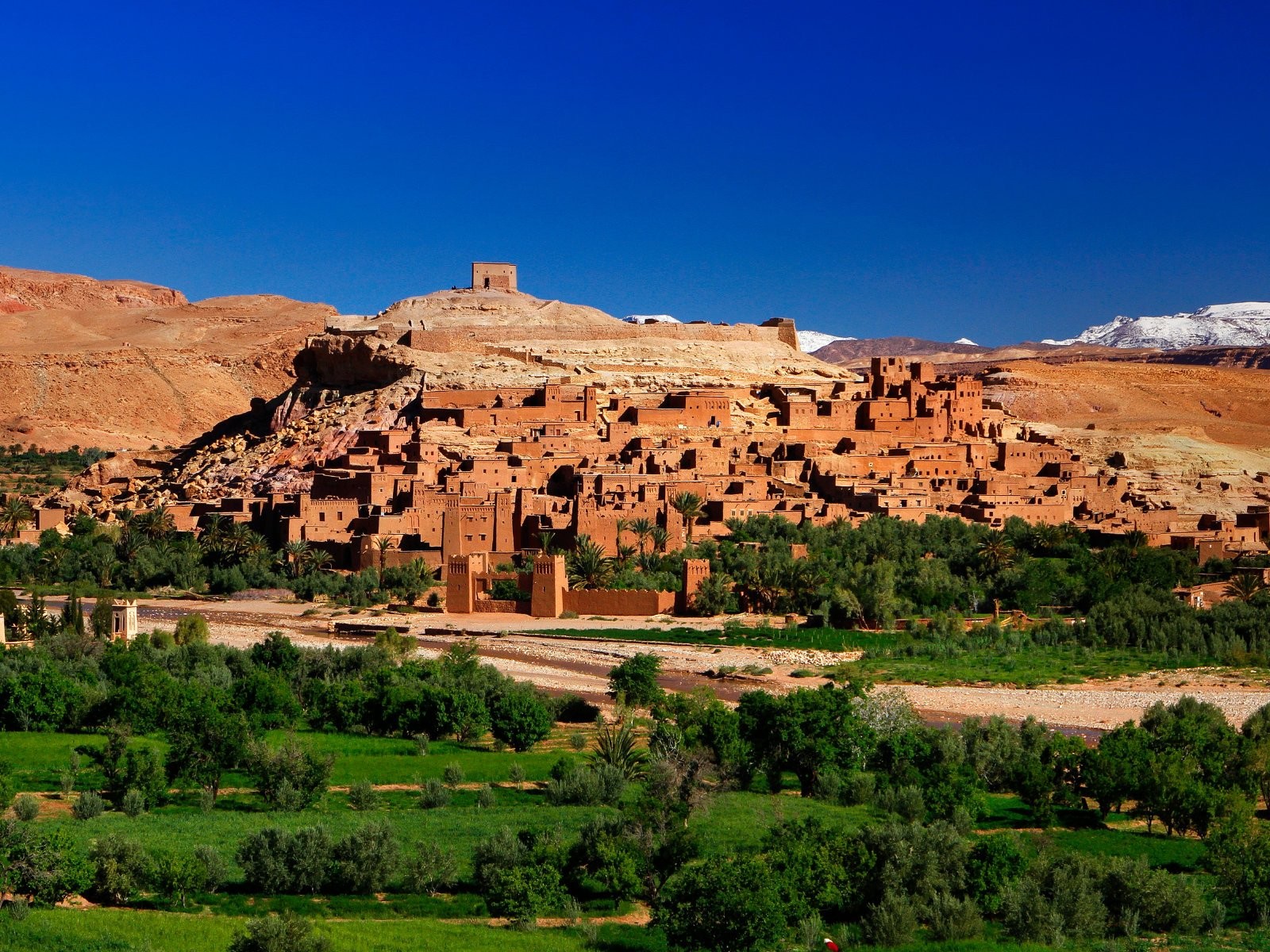 3 MARRAKECH / AIT BENHADDOU / OUARZAZATE / MARRAKECH Prima colazione in hotel e partenza alla volta di Ouarzazate attraversando l’Alto Atlante, tra panorami spettacolari e villaggi berberi. Ait Benhaddou appare come un castello di sabbia gigante: uno ksar fortificato fatto di terra cruda, con torri merlate e vicoli stretti. Passeggiando tra le sue mura si respira storia, tra antiche carovane e celebri set cinematografici. Dalla sommità si gode una vista ampia sulla valle circostante. Dopo il pranzo in ristorante locale, si prosegue verso Ouarzazate, conosciuta come porta del deserto. Qui si possono visitare gli studi cinematografici o la kasbah di Taourirt, esempio affascinante di architettura tradizionale. Rientro nel tardo pomeriggio, cena e pernottamento in hotel.