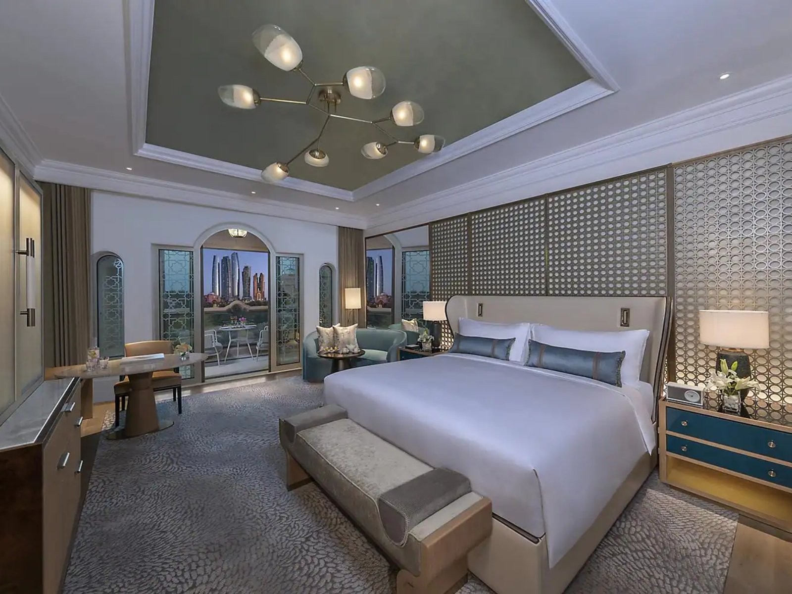 390 camere e suite di varie categorie, con balcone o terrazza privata, aria condizionata, TV satellitare, attrezzatura multimediale, telefono, internet, servizio maggiordomo. Numerosi ristoranti e bar fra cui Talea by Antonio Guida, ristorante stellato Michelin con autentici piatti della cucina italiana, Lebanese Terrace, con proposte libanesi, Hakkasan, ispirato alla cucina cantonese, Martabaan by Hemant Oberoi, con cucina indiana, Episodes, con alta pasticceria, snack, tè pomeridiani, Strawfire di Ross Shonhan cucina giapponese, Vendome, con cucina multinazionale, Sand & Coral "Fire Cookin" Broadway Brasserie Americana, Cascades di ispirazione greca, Alma cucina messicana, Cafè fountain sunset, per piacevoli pomeriggi e serate. Attrezzata spiaggia privata, piscine, centro fitness, tennis e biciclette. A pagamento: Spa con sale per massaggi e trattamenti di benessere e rilassanti. Kids Palace con attività ricreative per bambini da 1 a 12 anni