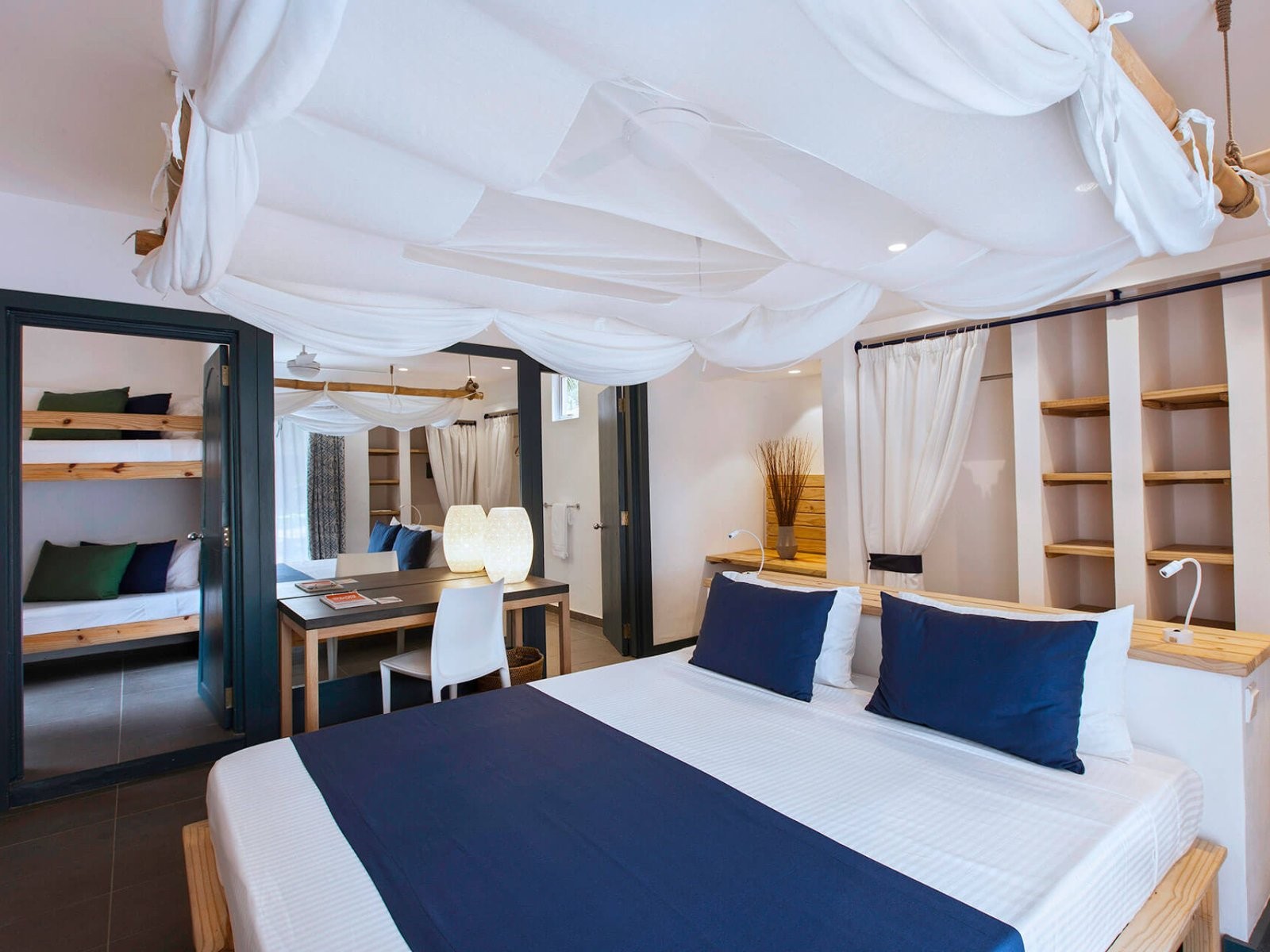 Senses, ristorante principale a buffet con postazioni per proposte di piatti locali, Sandy Lane restaurant e Sandy Lane Bar riservati ai clienti prenotati in privilege, Sun Deck, con cucina mauriziana, Footloose, per bevande rinfrescanti e gustosi aperitivi al tramonto con musica. Spiaggia, piscina, kayak, tennis volley, bocce. A pagamento: noleggio biciclette, immersioni, battute di pesca, escursioni in catamarano. Seven Colours Spa con 3 cabine per massaggi e trattamenti. Timomo Kids Club con attività per bambini e teenagers e piscina. A pagamento servizio di baby sitter.
